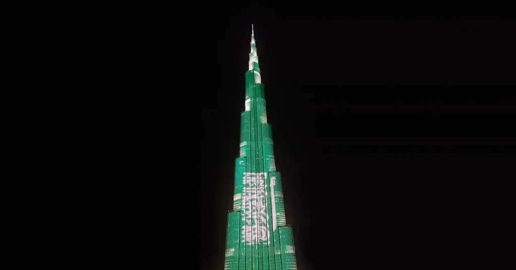 Come watch the Burj Khalifa light up with the KSA flag on Monday, 23rd September along with a Saudi National Anthem display at the Dubai Fountain.
