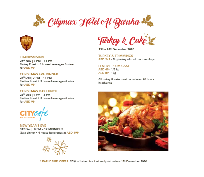 Plus leading up to Christmas Day, you can enjoy delicious turkey or festive plum cakes from Citymax Hotel Al Barsha and Citymax Hotel Al Barsha at The Mall!