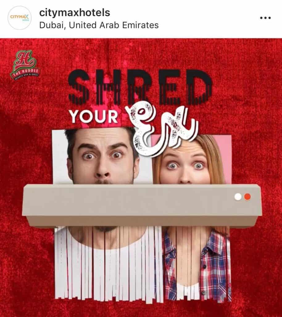 Valentine’s Day isn’t your thing? Are you’re sick of lovesick couples? Then you should head straight to your nearest Huddle Sports Bar and Grill in Bur Dubai or Al Barsha to ‘Shred Your Ex’!